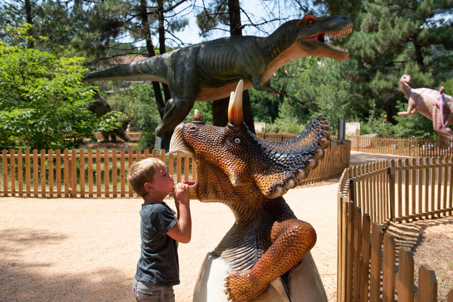 Embarquez à bord du petit train pour une excursion à travers la Forêt Fossile, où vous pourrez admirer des reproductions grandeur nature de créatures préhistoriques. Les petits aventuriers pourront également s'amuser dans l'aire de jeux, faire une partie de mini-golf ou partir à l'aventure dans les parcours d'accrobranche.
